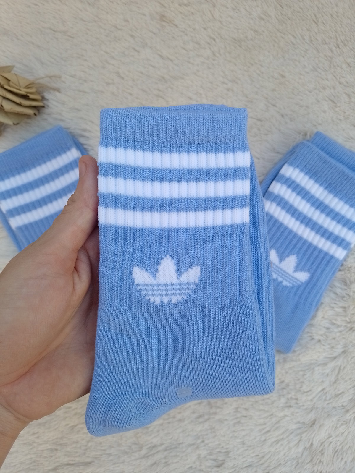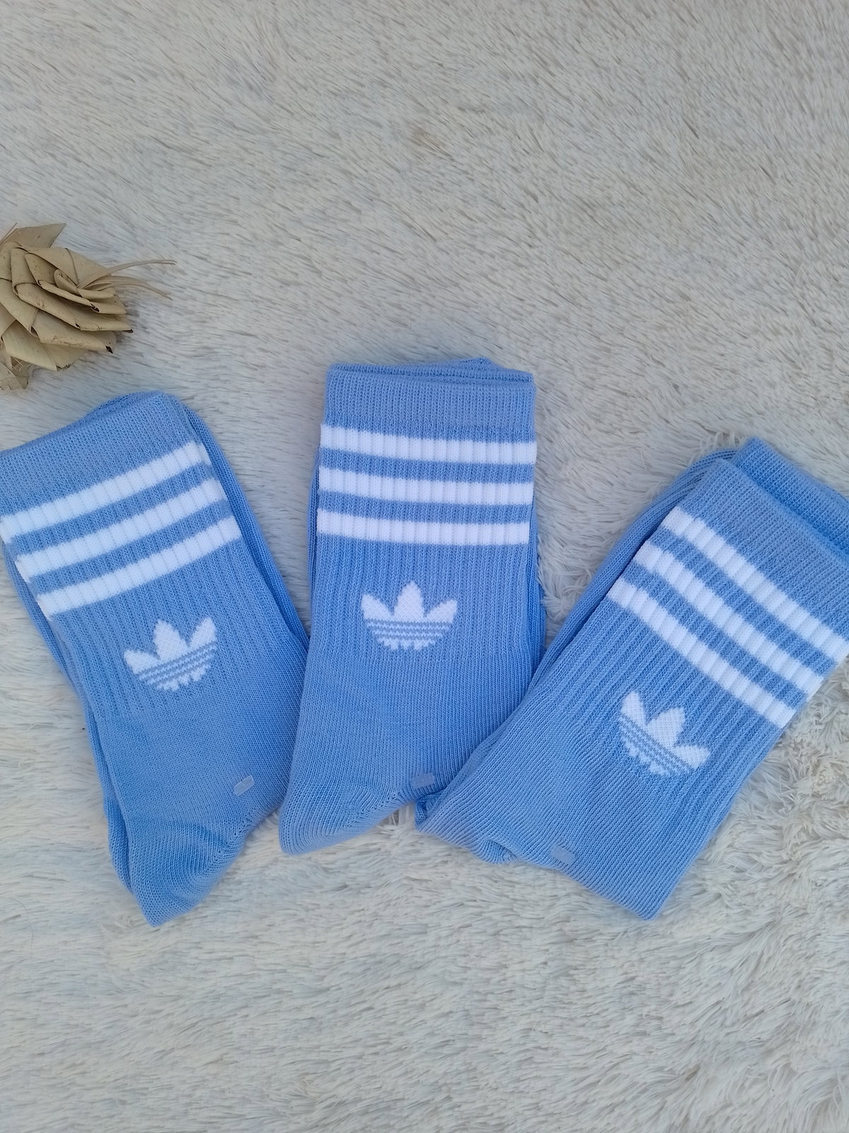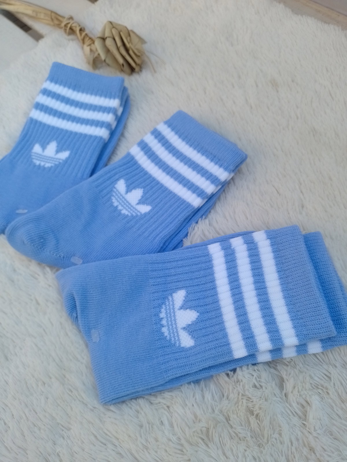 Medias adidas color CELESTE rayas blancas L.C