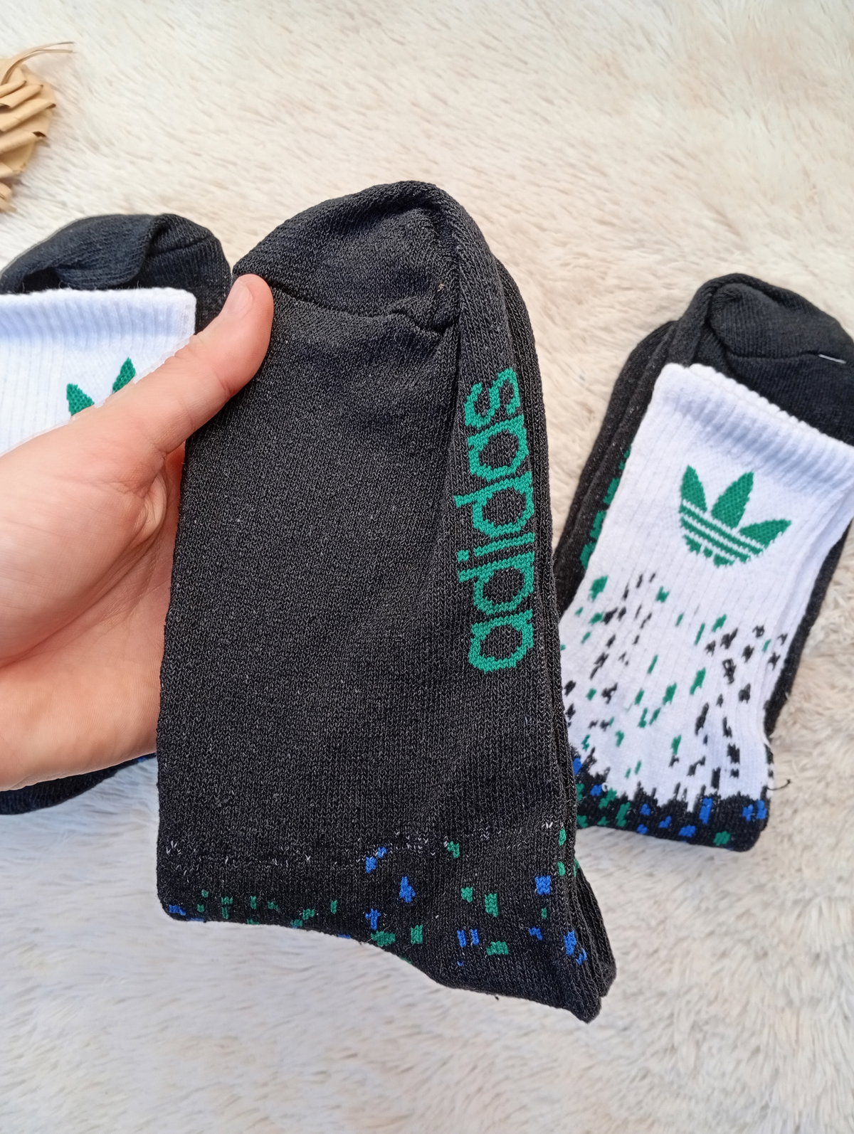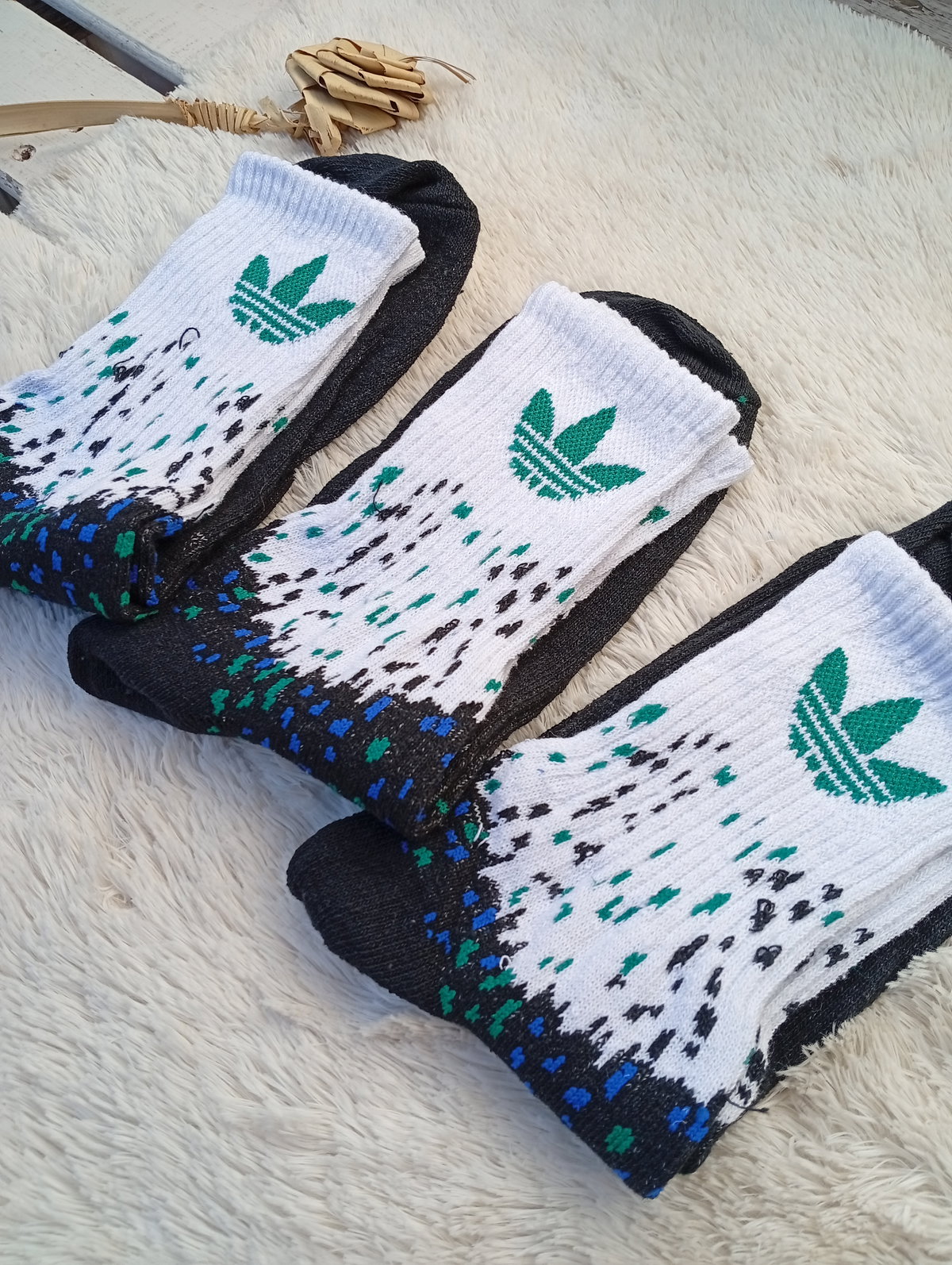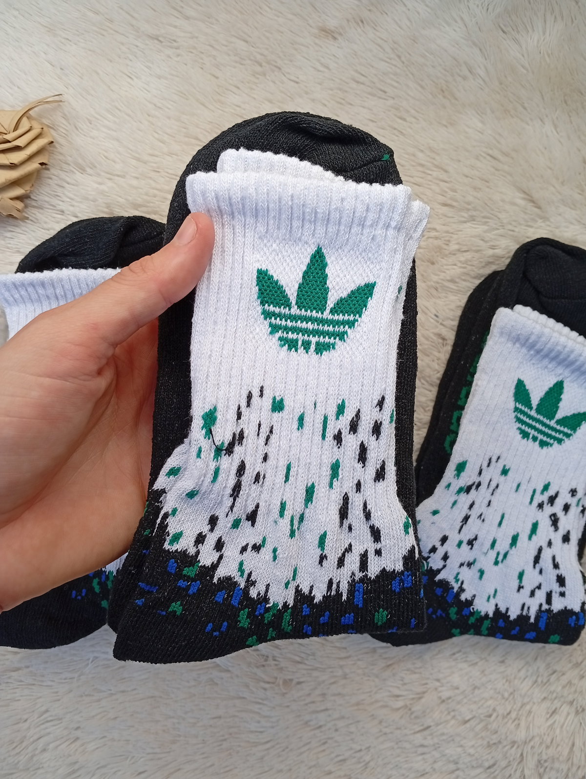 Tennis Adidas bicolor B/N pintitas verde. Adulto. Algodon