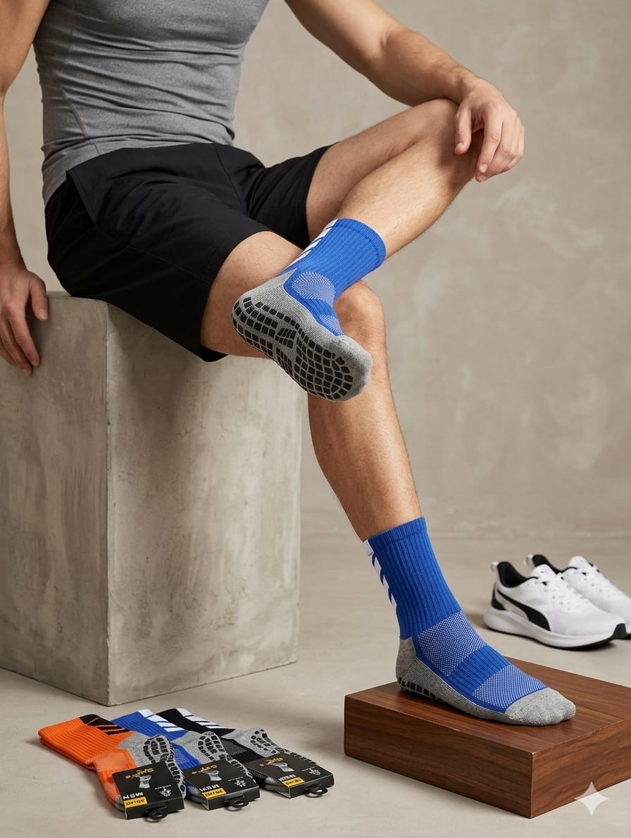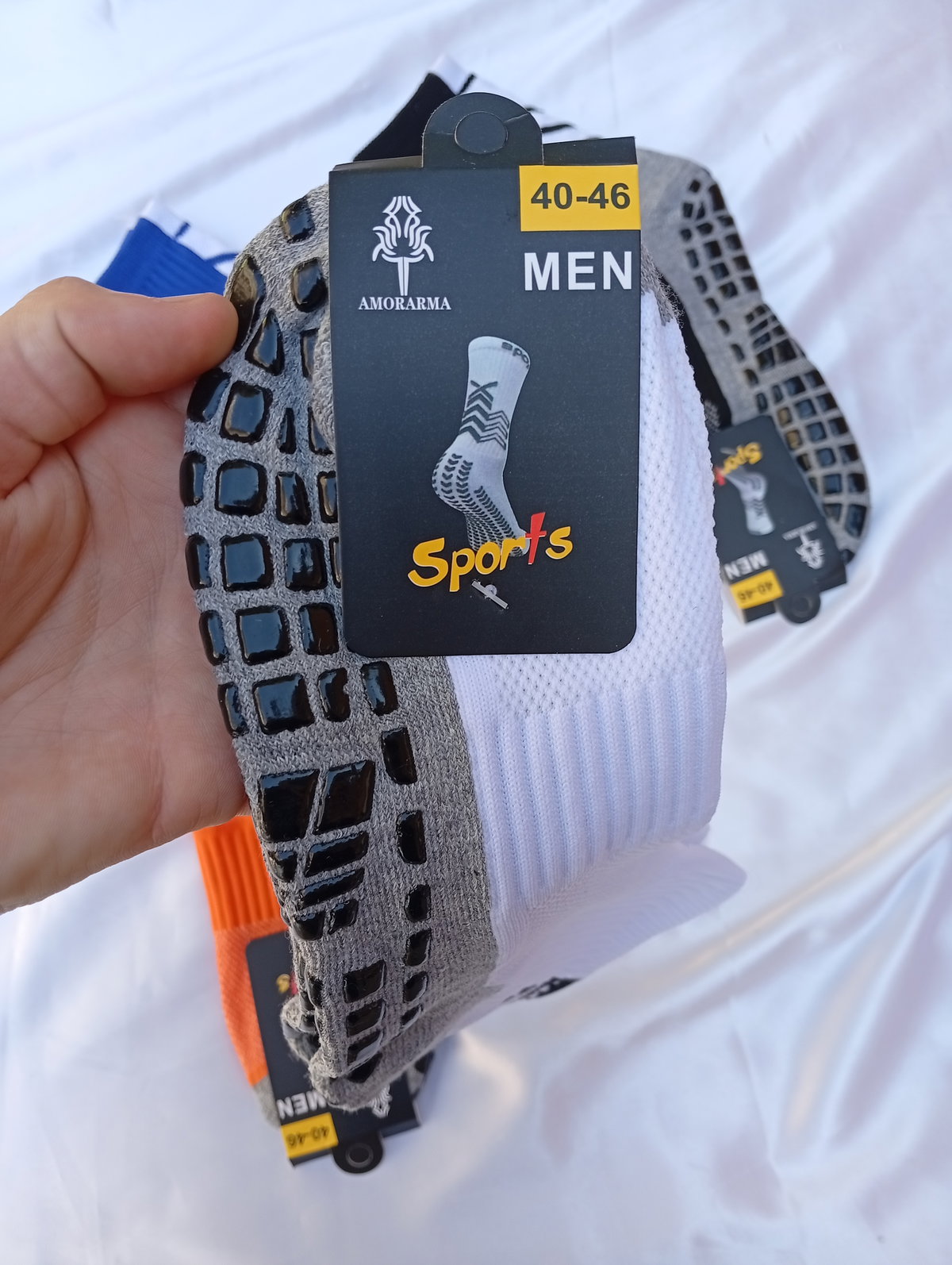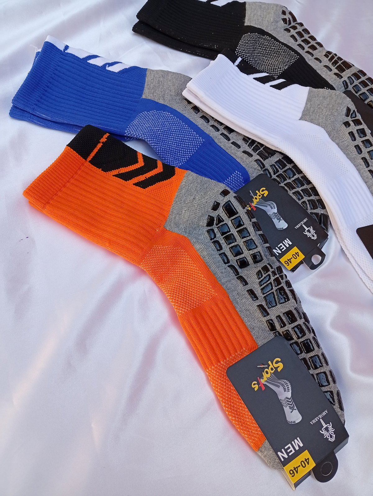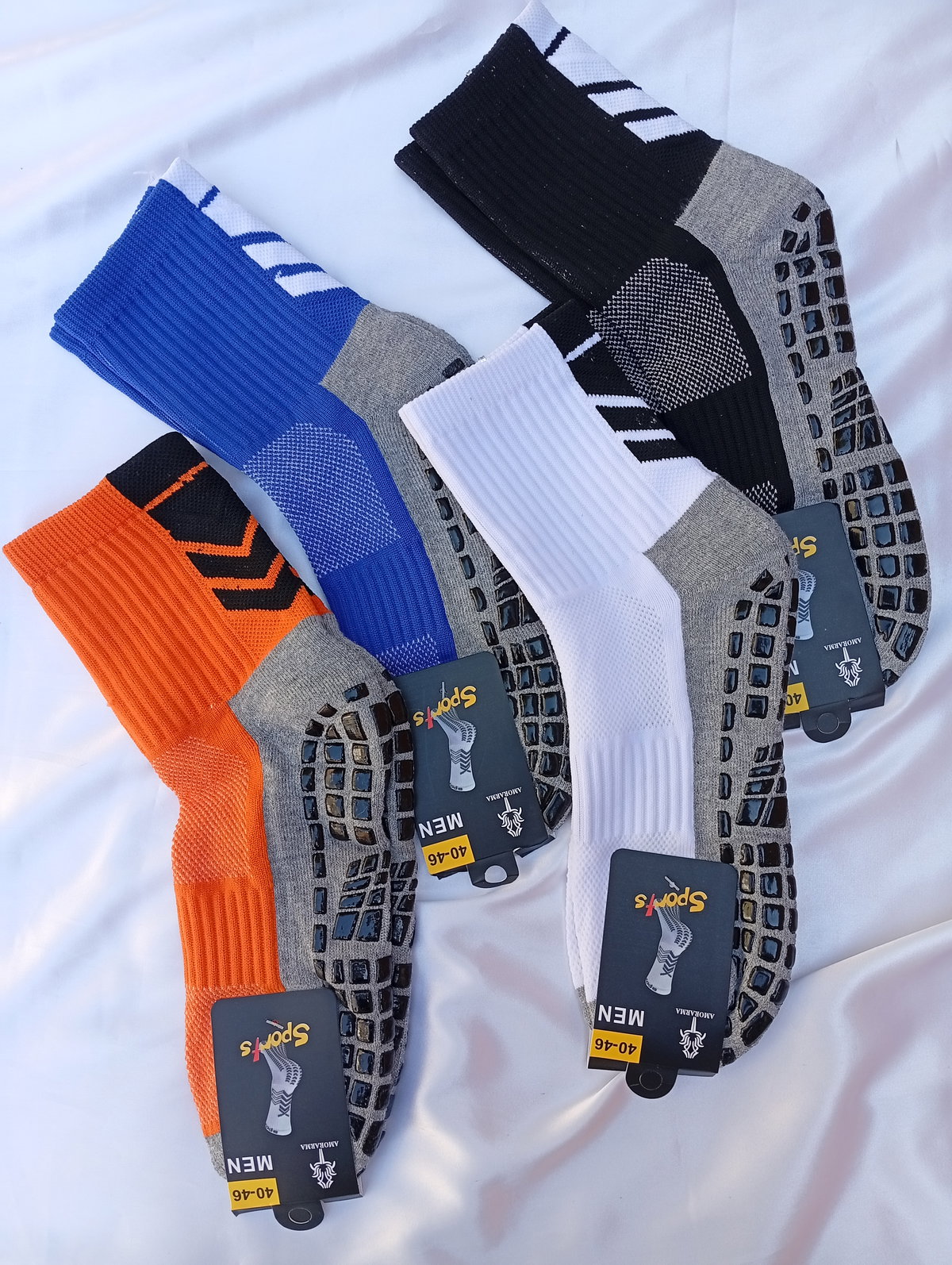Son medias antideslizantes de hombre talles grandes.