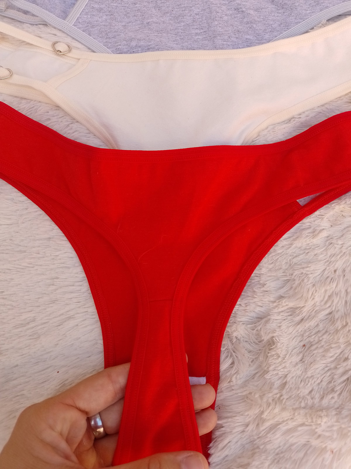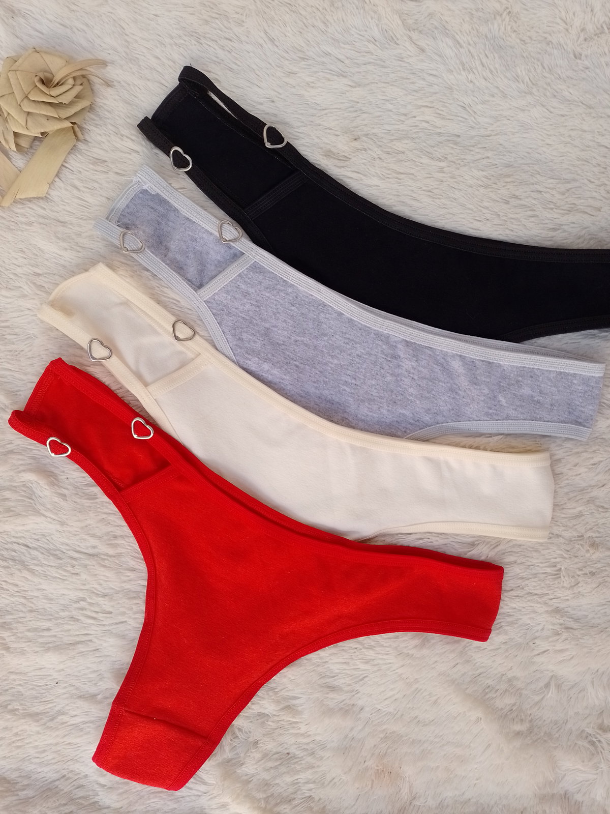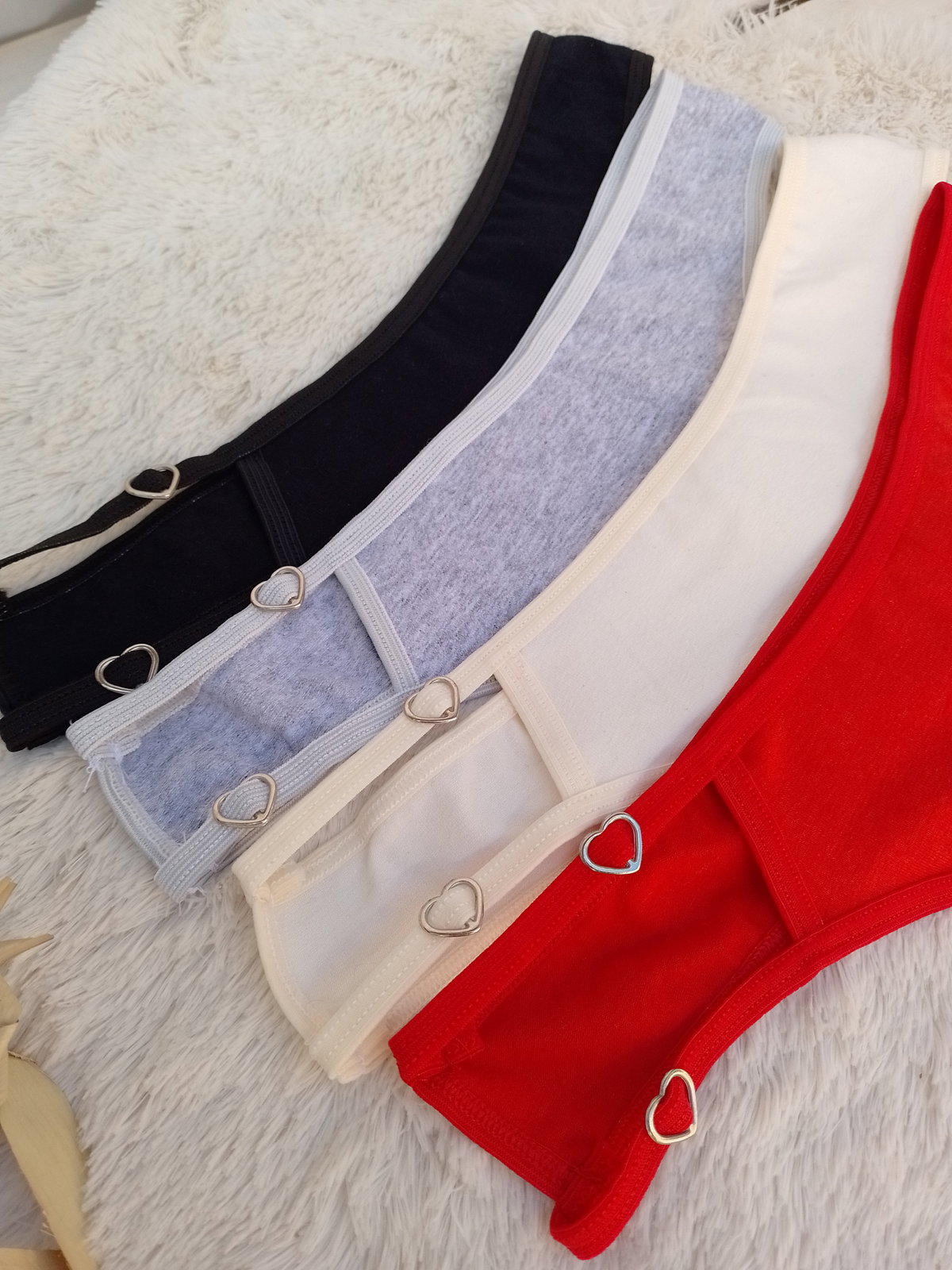 Son colales de algodon enteras, tienen 2 tiras en el lateral con el dije de corazon. Son talles unicos abarca del 36 al 42