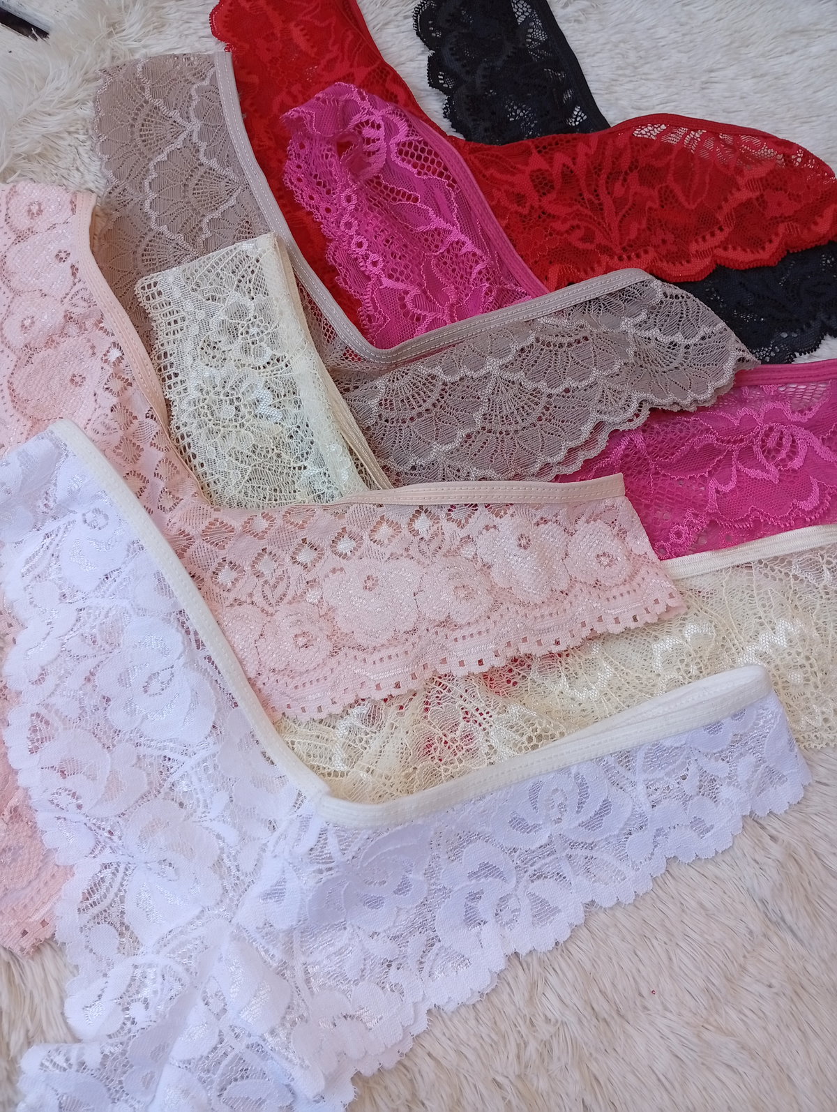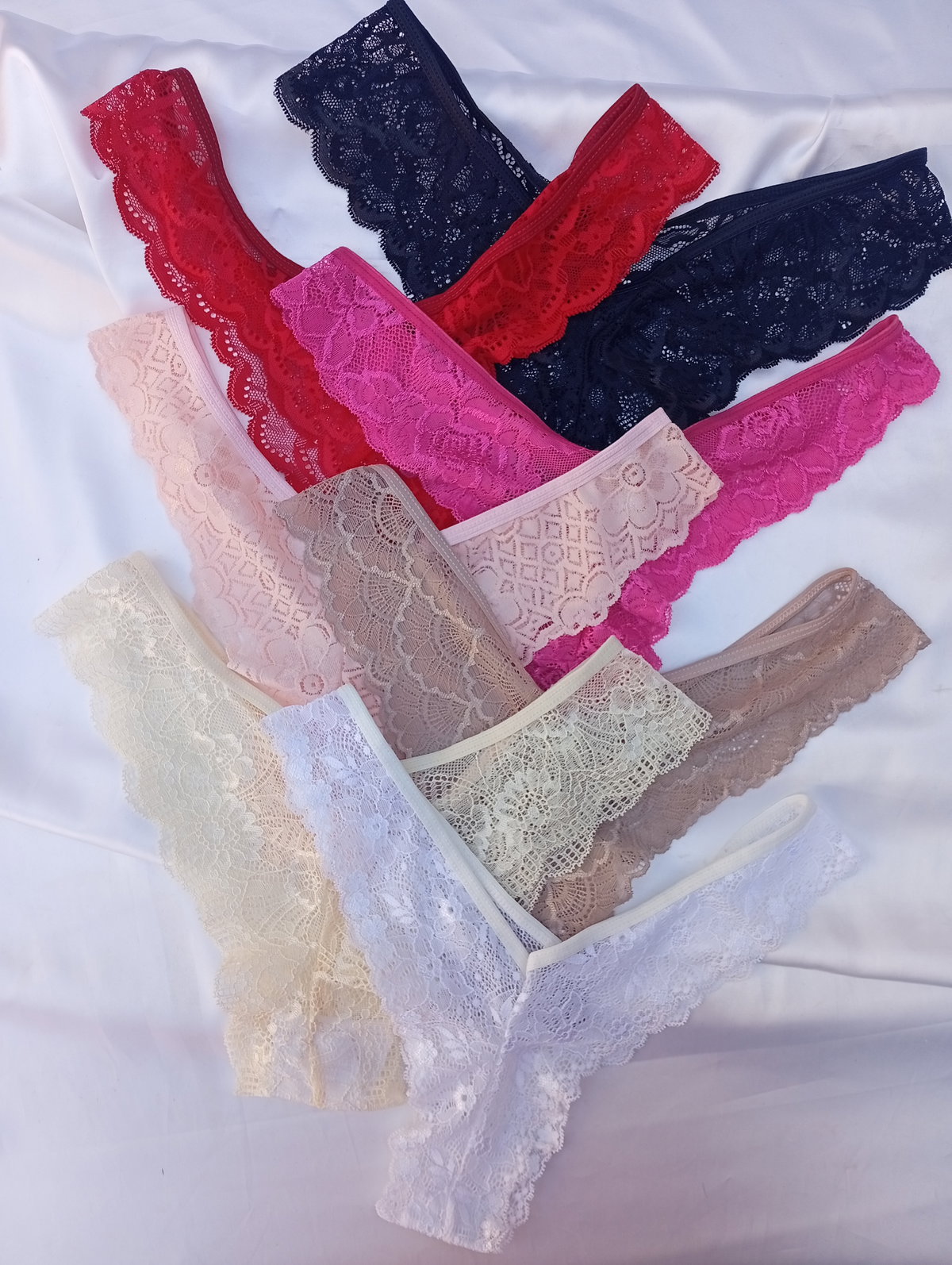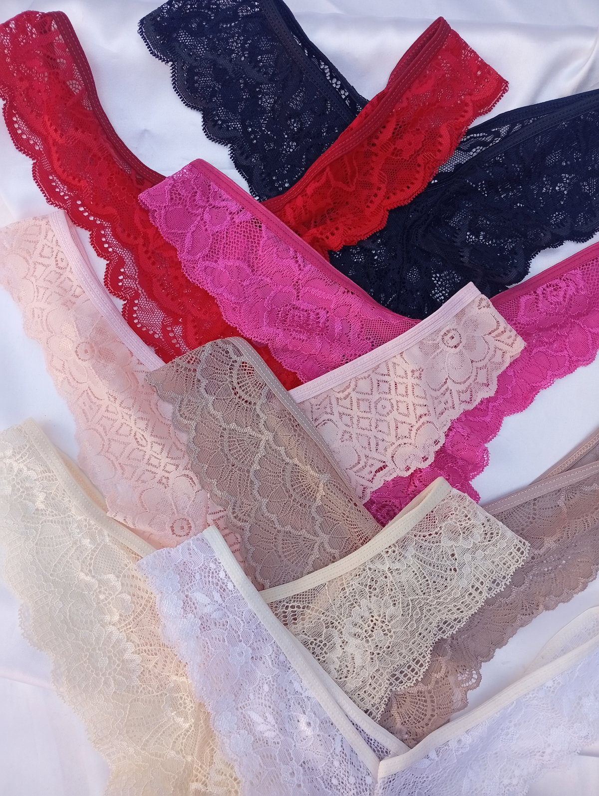 Es todo encaje, la parte de atras segun el color puede ser más finita.