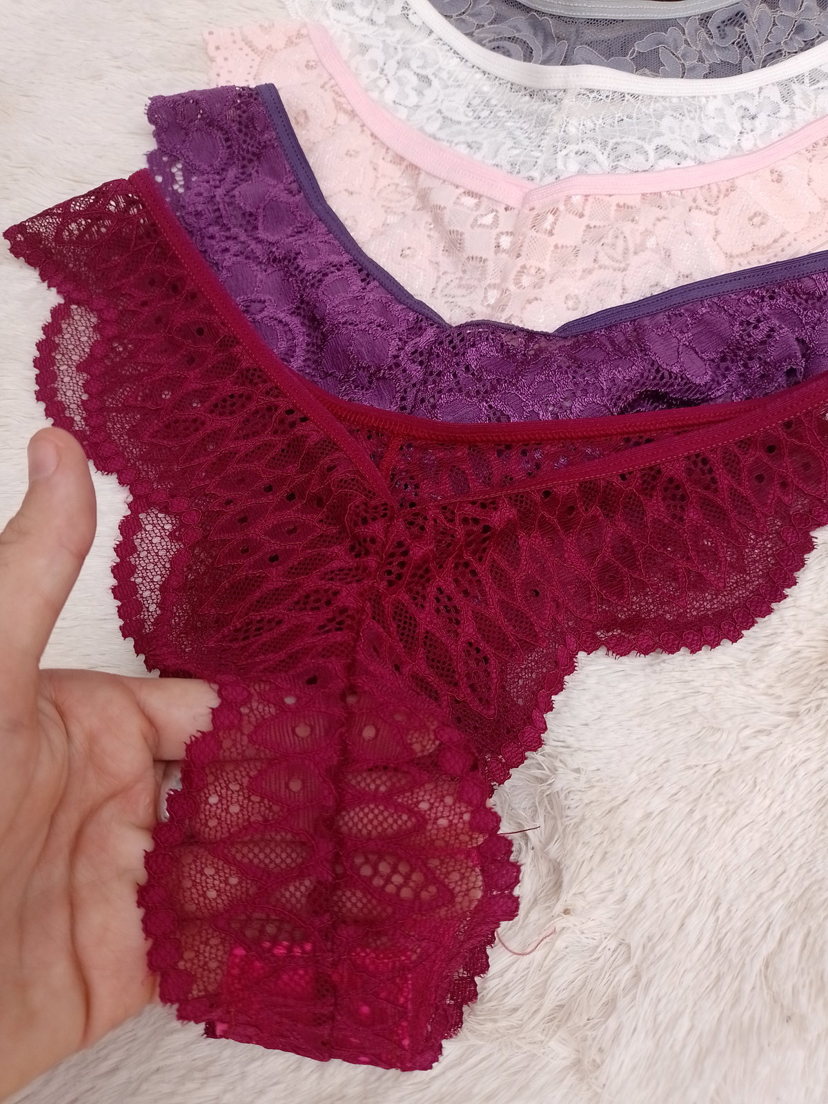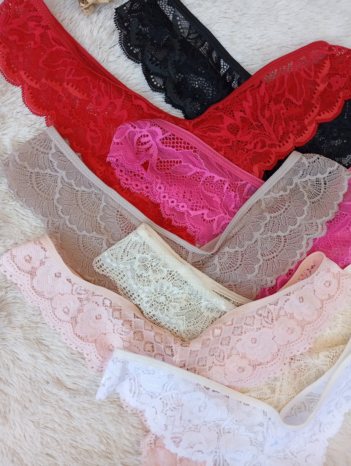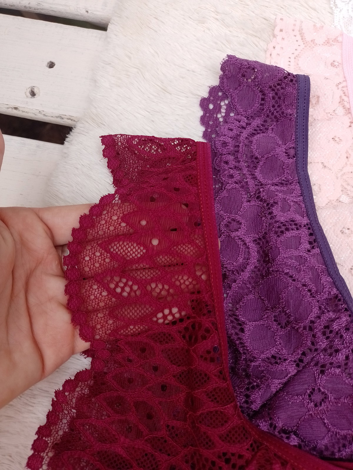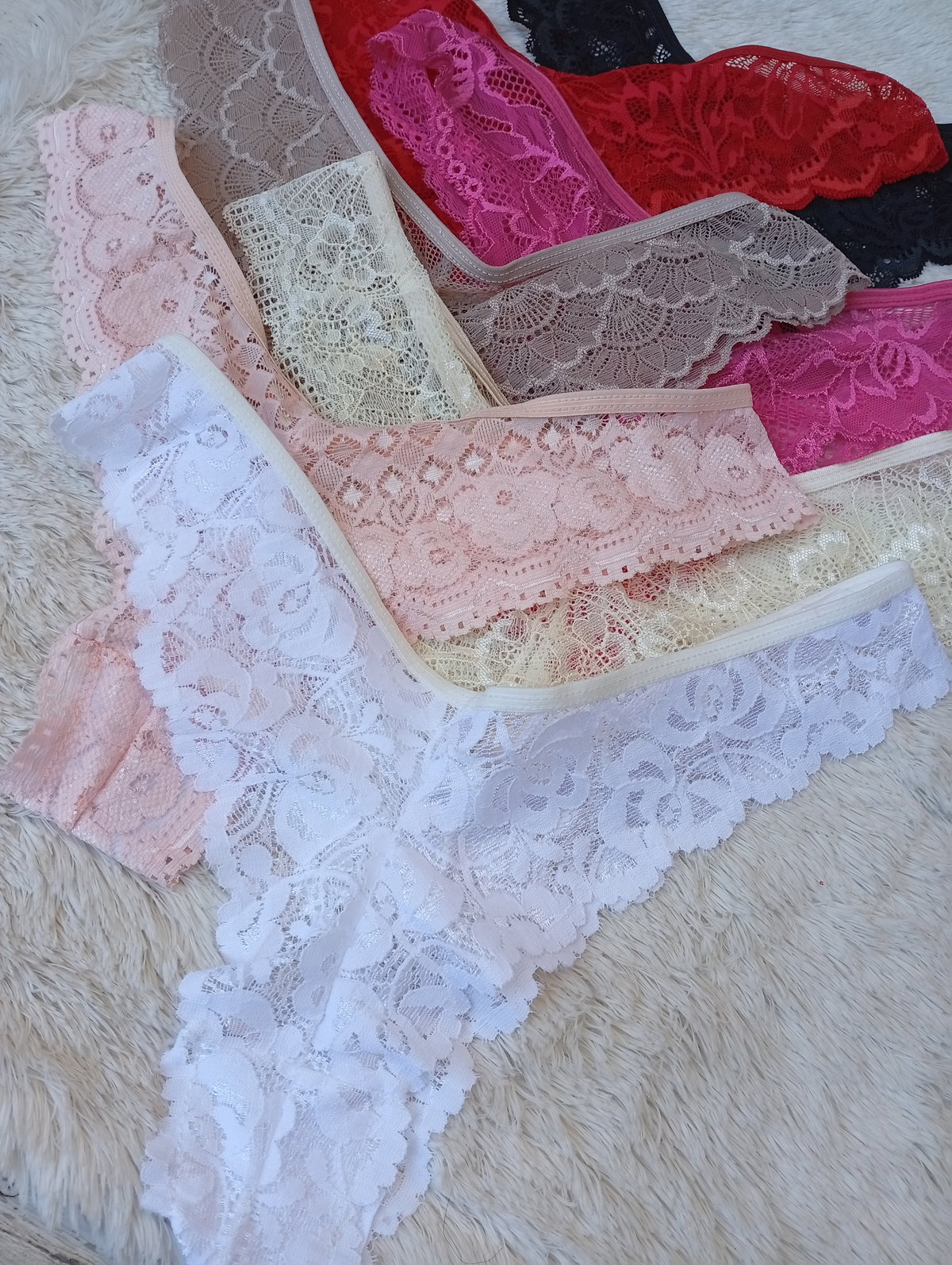 Es todo encaje, la parte de atras segun el color puede ser más finita.