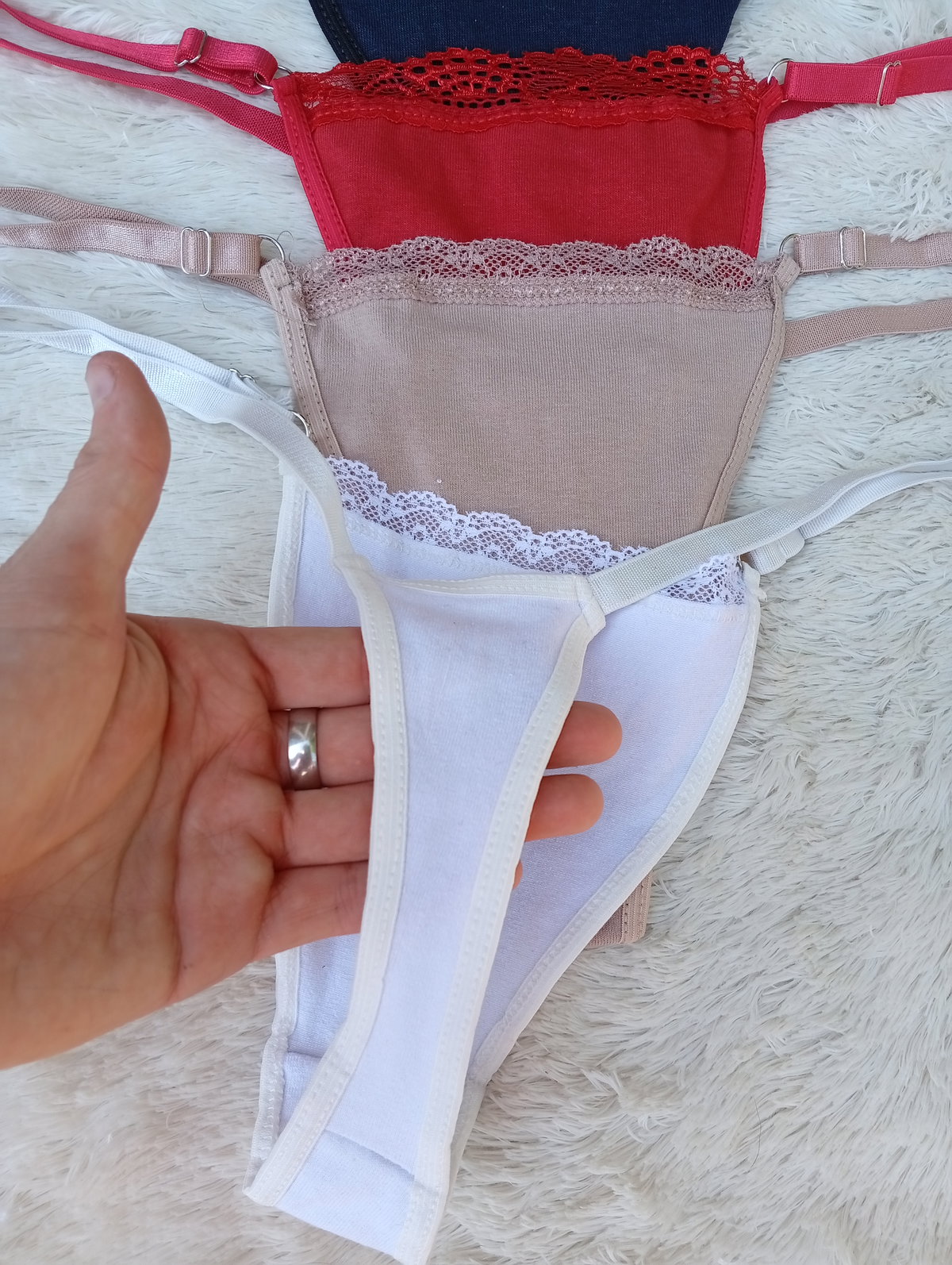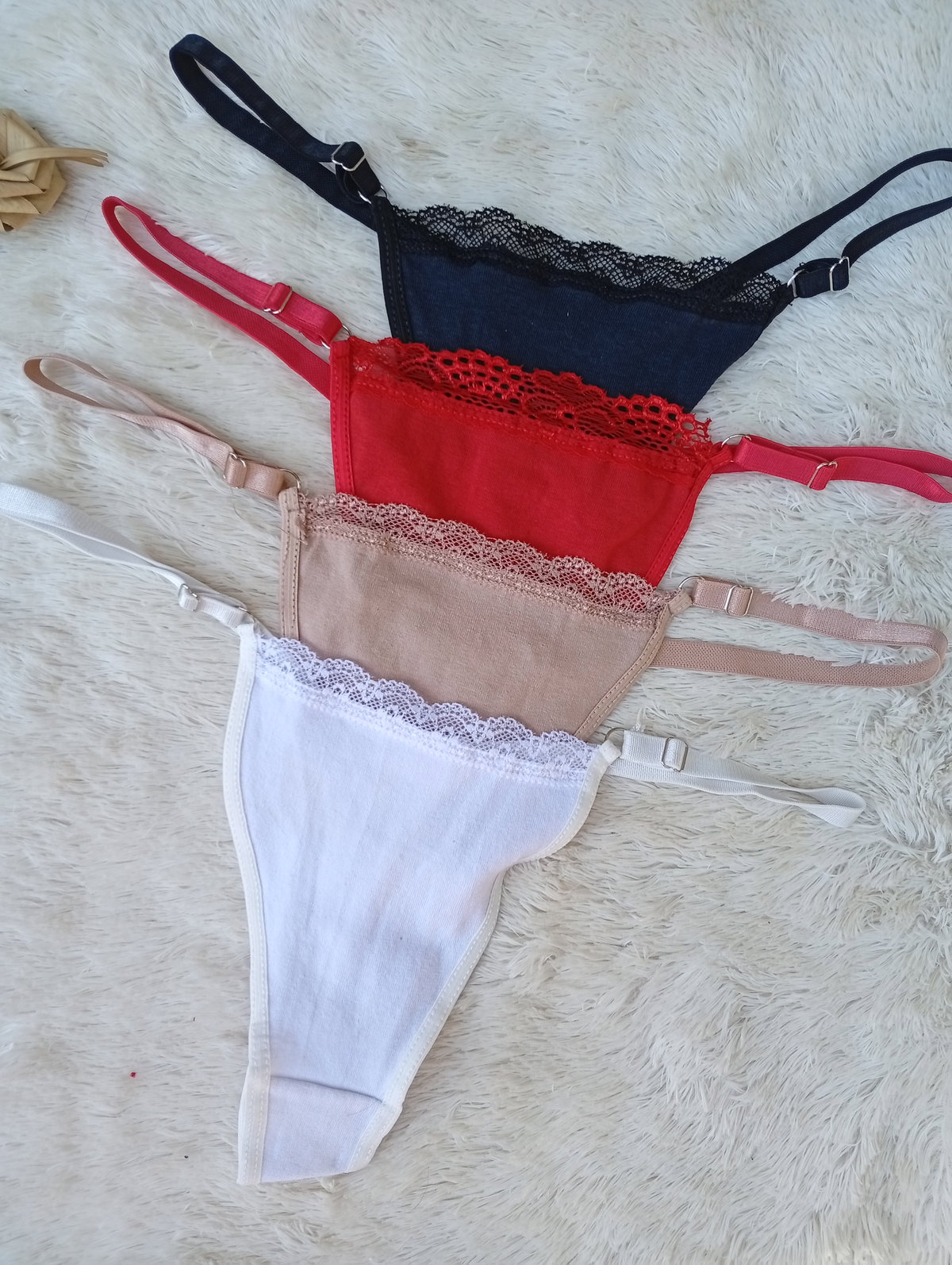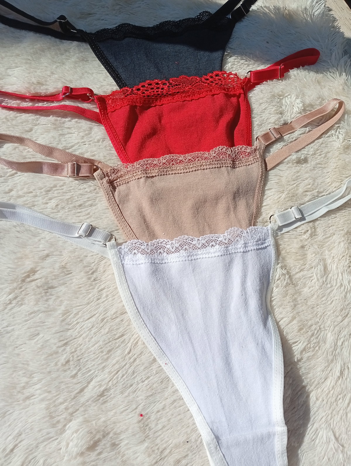 Son Less de algodon con puntilla colores clasic, regulables. Son talles unicos abarca del 36 al 40
