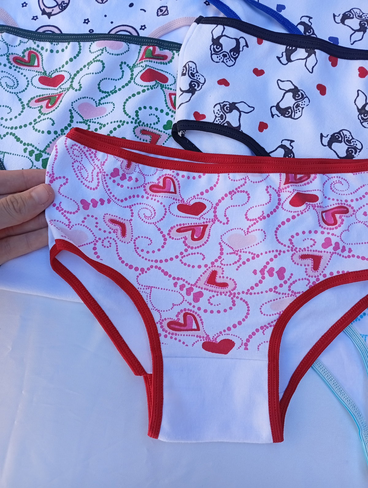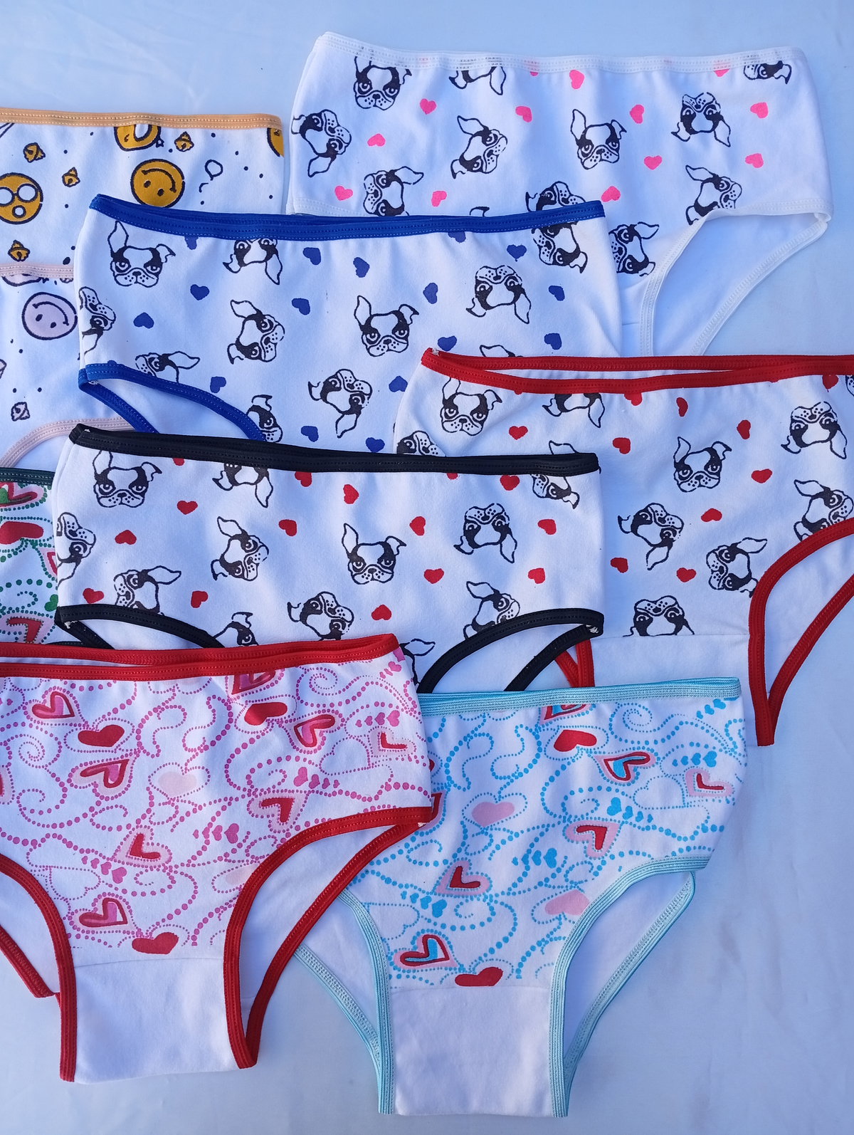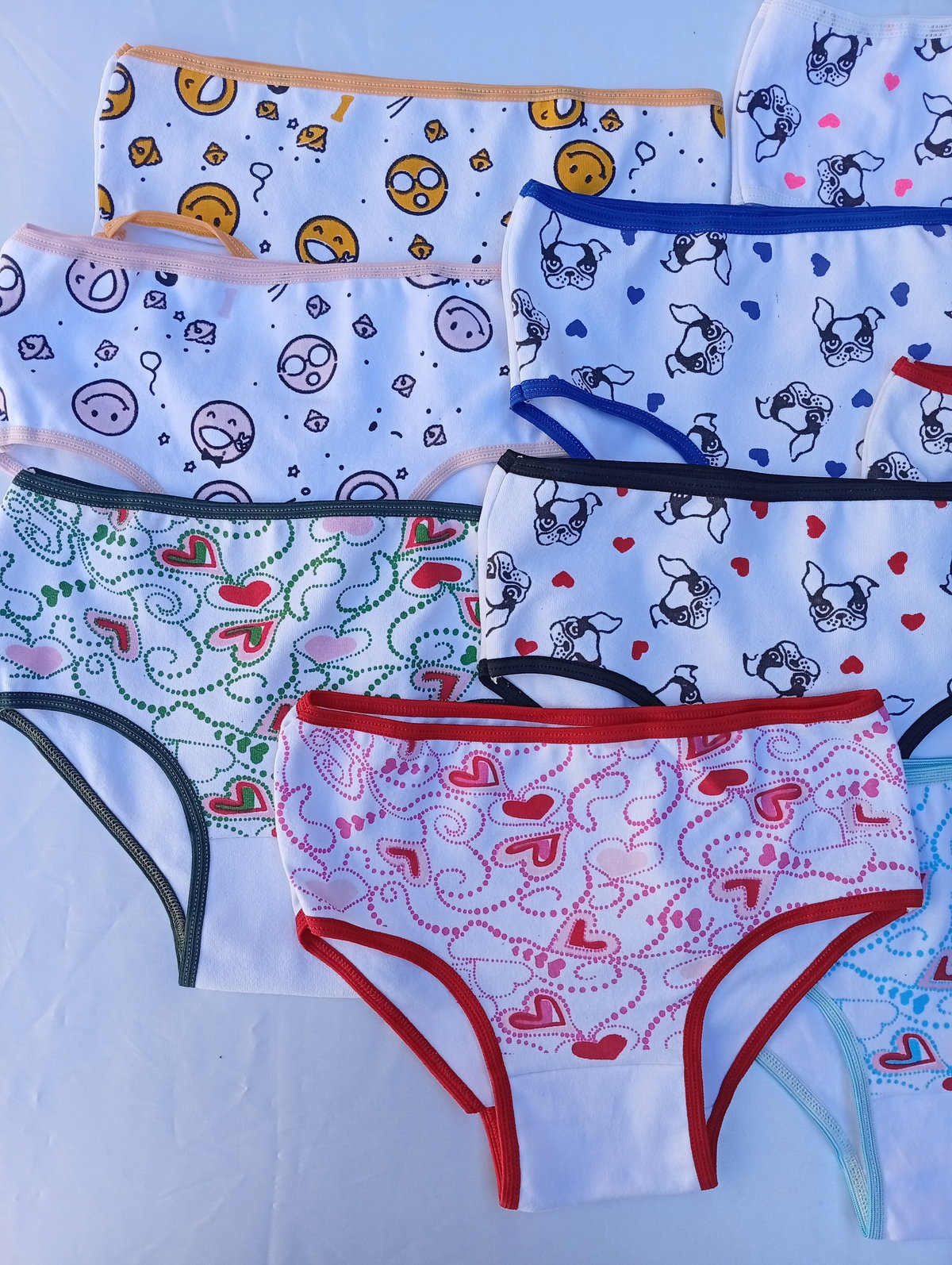 Talle 3. Confeccionada en algodón, base blanca. Estampas de colores variados, con elástico al tono.