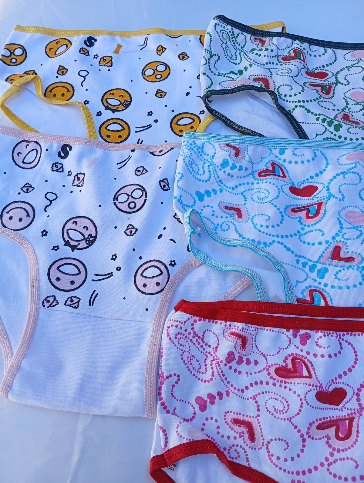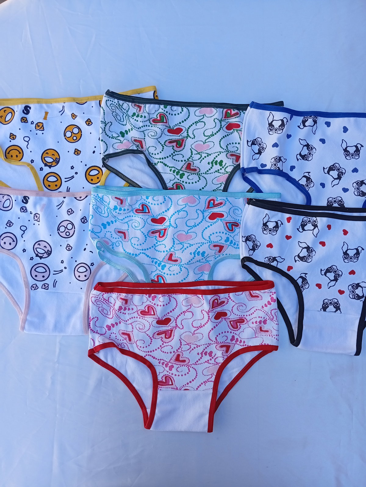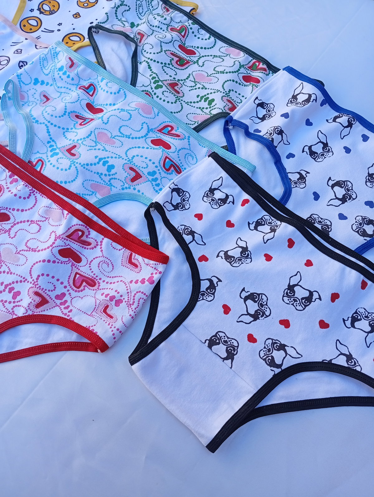 Talle 4. Confeccionada en algodón, base blanca. Estampas de colores variados, con elástico al tono.
