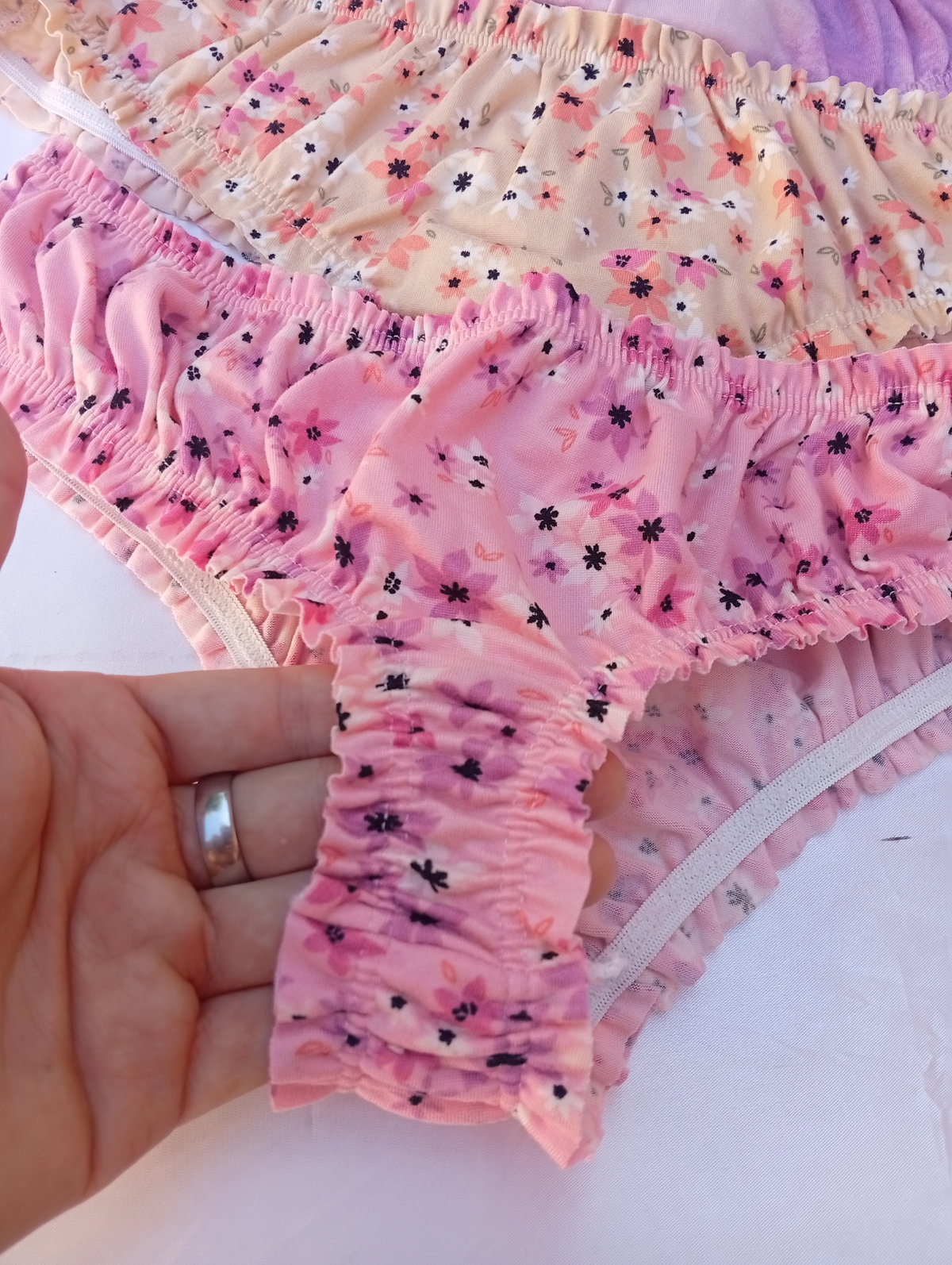 Less fru fru de Lycra con algodon. Estampadas.