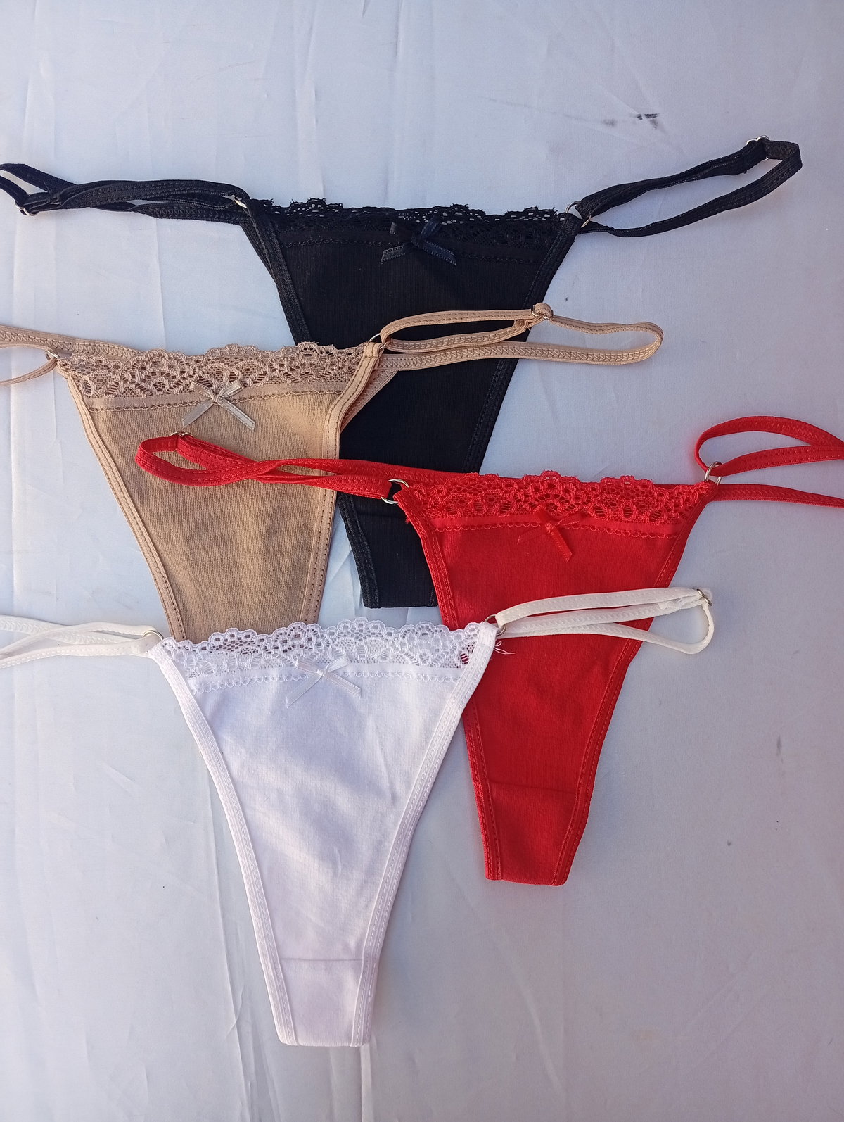 Son Less de algodon con puntilla y moño colores clasic, regulables. Son talles unicos abarca del 36 al 40