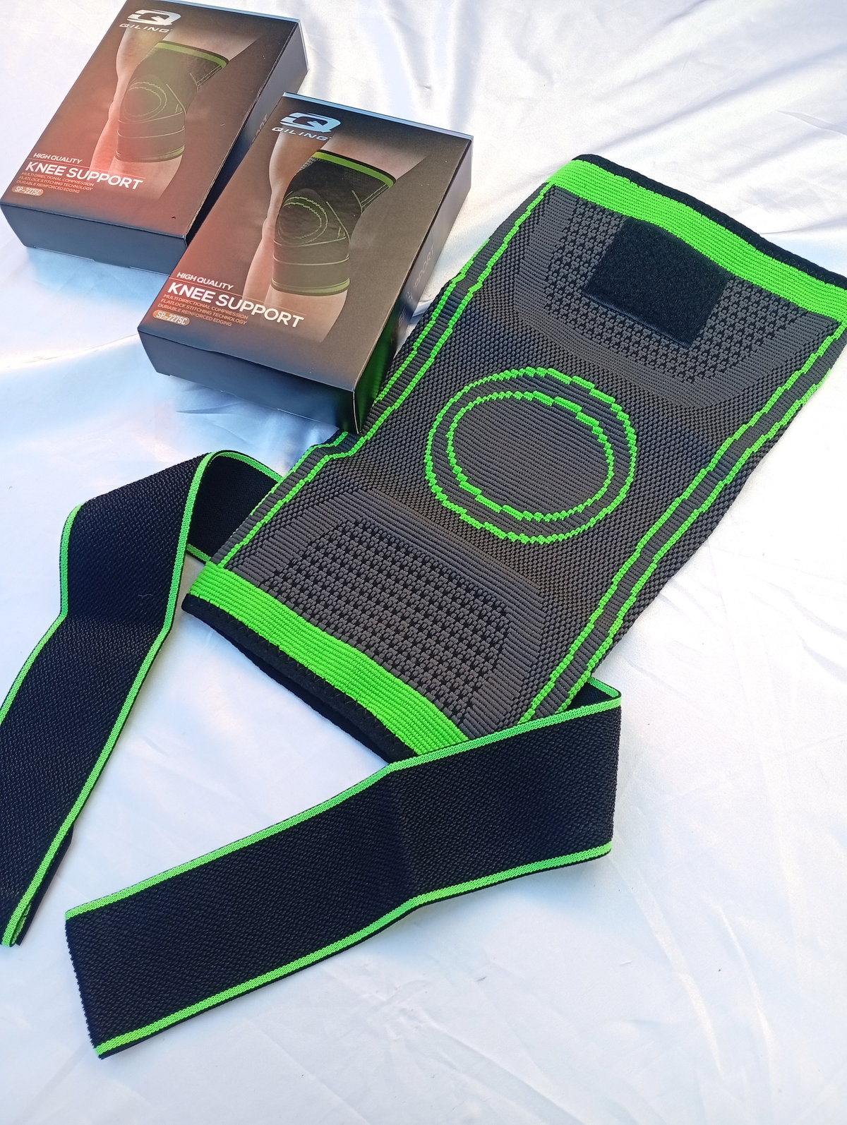 Esta rodillera de compresión marca Giling está diseñada para brindar soporte ortopédico y deportivo.