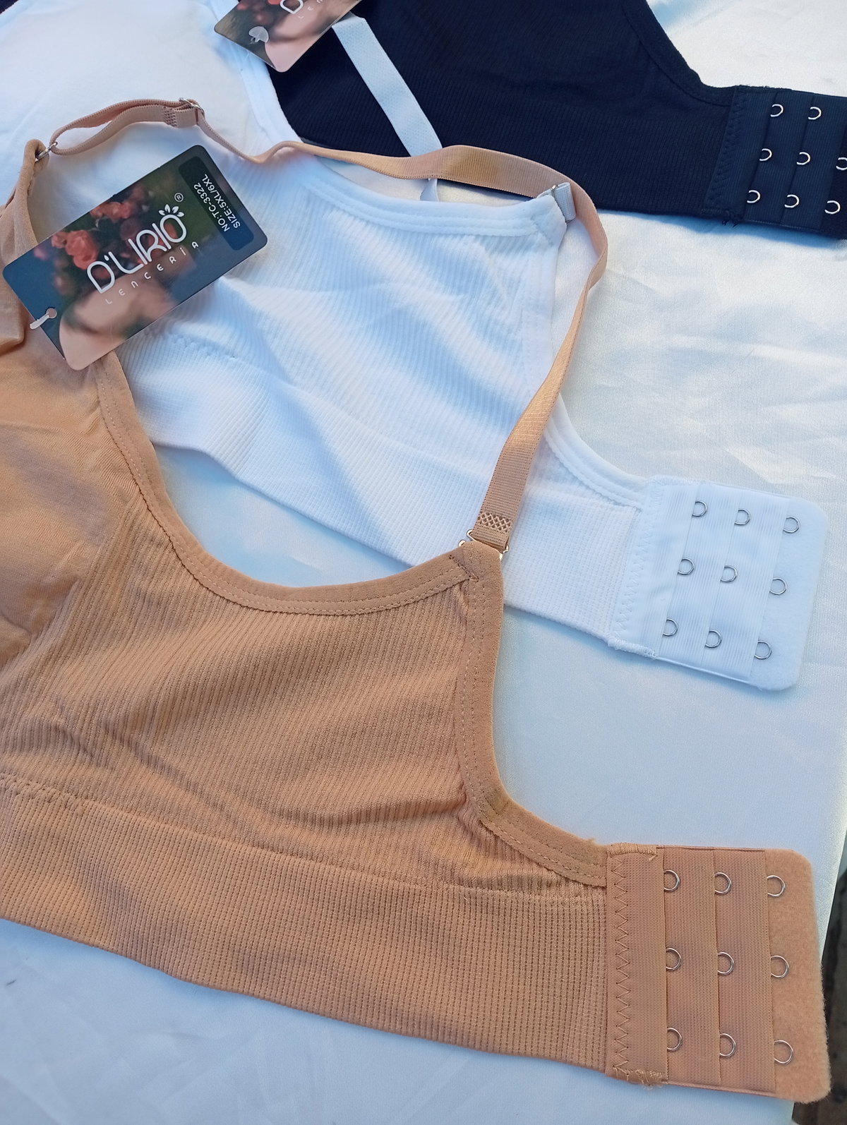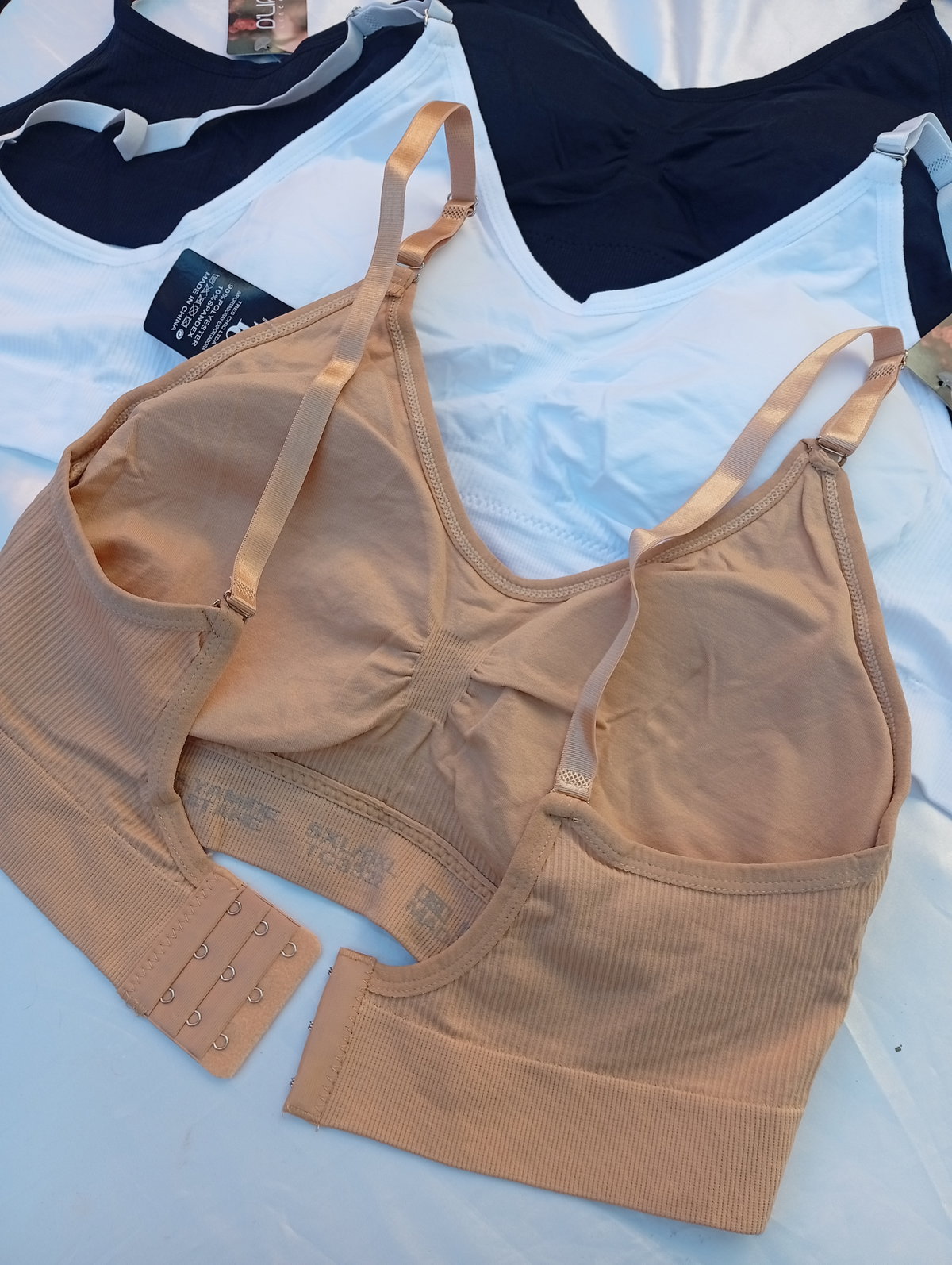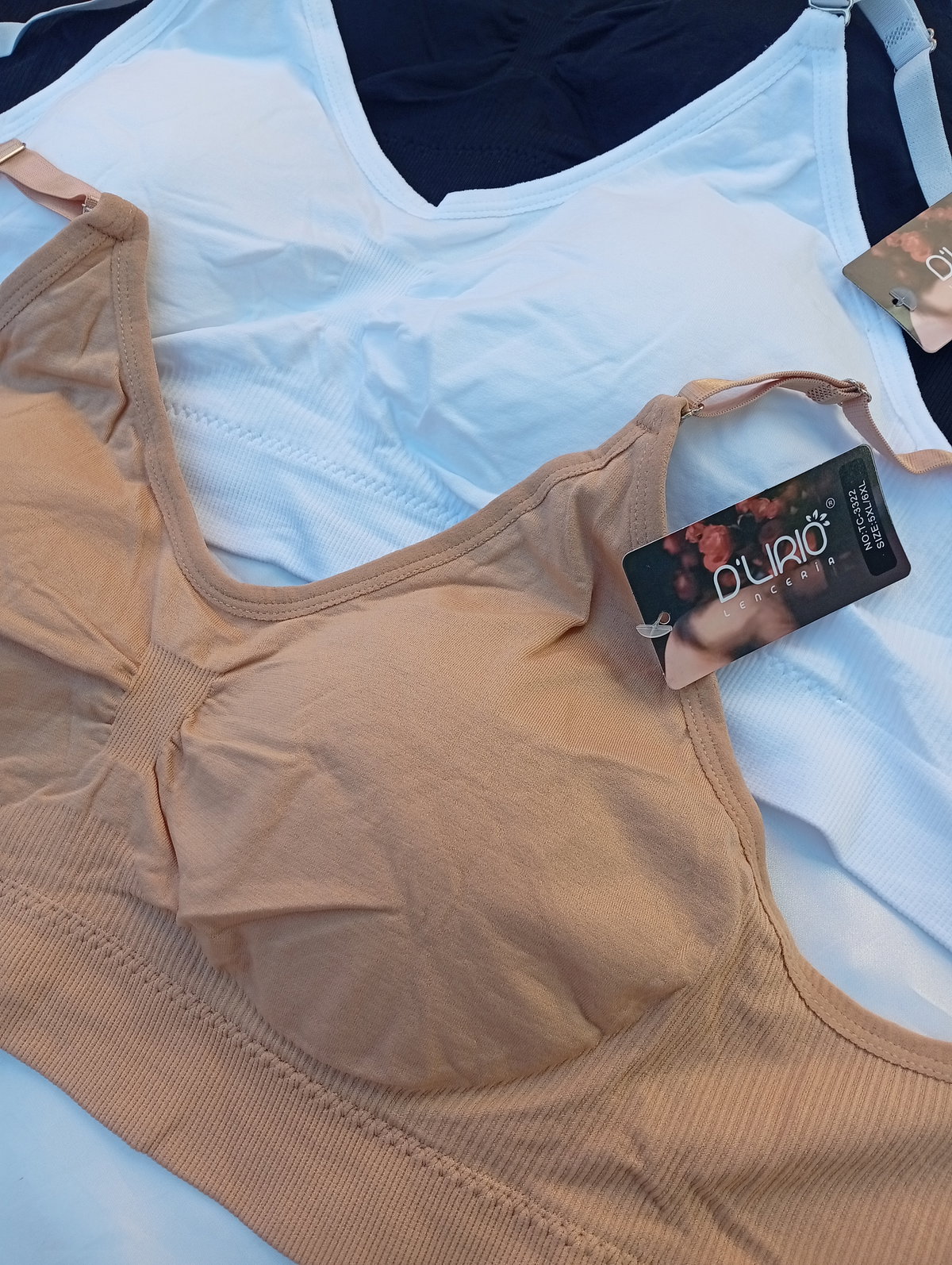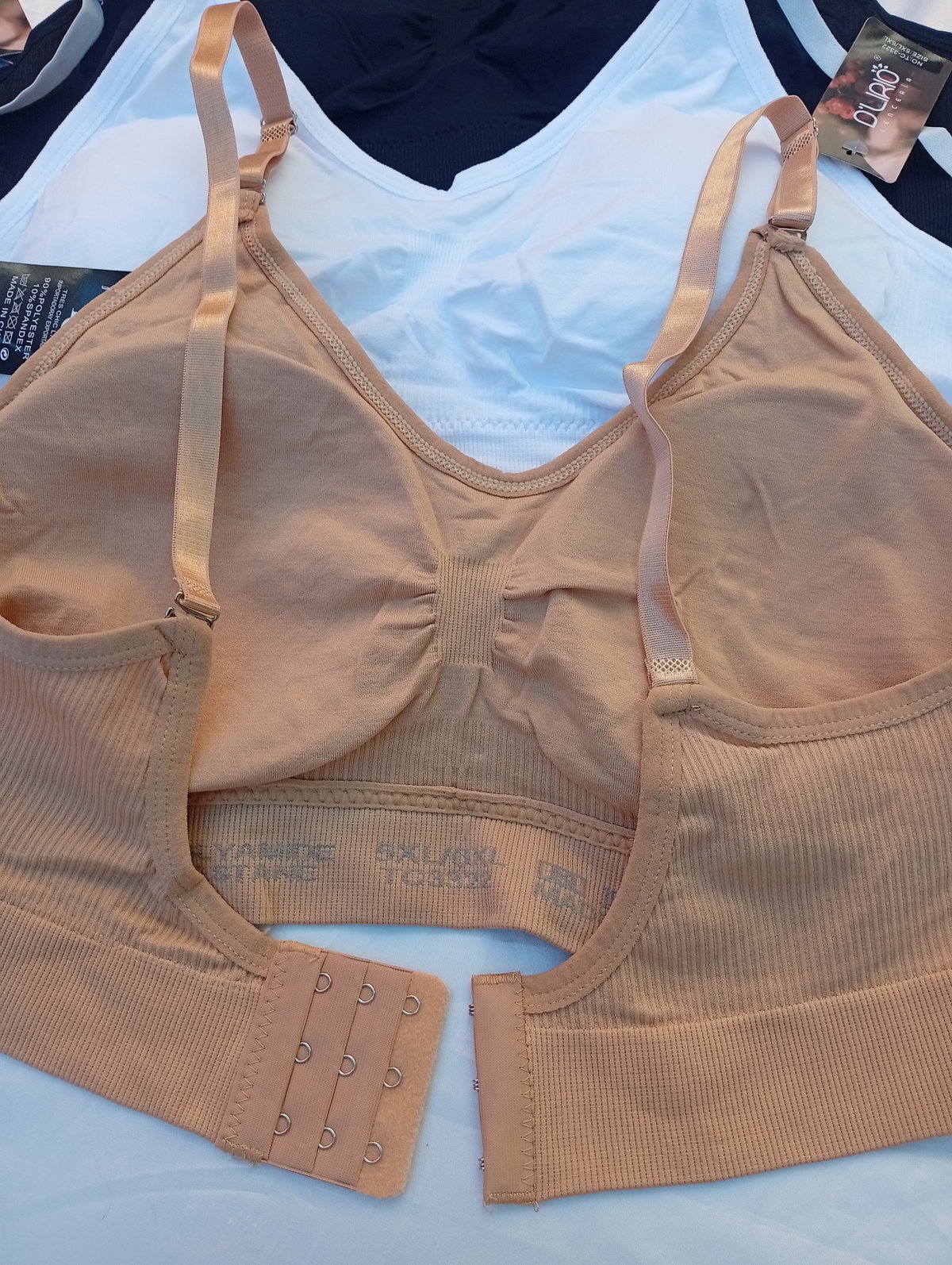 Tiene tazas removibles, breteles anchos y totalmente desmontables. Tienen 3 filas de ganchos.
